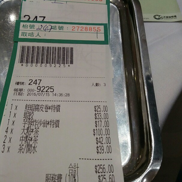 為了試用FoodGulu,今天下午和小海倫,還有Christy到太古城美心皇宮下午茶。下午1:28FoodGulu还未能取下午茶票,但到1:30取票已是A58!下午茶由2時開始,不過1:58巳經開始下午茶入座,門口站滿等位的人,等待至2:27才輪到我們的枱號。海倫又叫肚餓,可惜点心紙上的点心太少,唯有等点心車,這对海倫是有趣的經驗!令人失望,太少点心車路過,点心車上的掛牌又和車上的点心不符,問点心姨姨:“等車啦!”所有点心上桌已經半涼!服務態度大有改善空間!Helen和Christy要到洗手間,詢問路過的点心姨姨,回答是:“你自己揾啦!”…查看更多