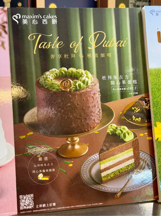 [ Maxim‘s Cakes美心西餅 ]全球爆紅既 杜拜朱古力🍫,終於係香港都食到!美心西餅 即日起首度推出全新「杜拜朱古力開心果蛋糕」,讓大家感受來自杜拜嘅奢華滋味。✿ 杜拜朱古力開心果蛋糕 $198(Eatizen會員價92折:$182.2)尺寸及重量:4.5吋, 約1磅 杜拜朱古力之所以大受歡迎,在於其香濃酥脆嘅口感😋!呢個蛋糕用濃郁嘅開心果醬搭配中東傳統甜品庫納法 (Knafeh) 秘製而成的麵絲脆脆,配上可可濃度達54%嘅比利時朱古力🍫。蛋糕表層採用香濃開心果忌廉及朱古力脆皮,加入日本產嘅開心果粒,提升開心果風味,入口即感受 酥脆 x 香濃 x 絲滑,⾹滑細膩!😍 ✿✿✿✿✿✿✿✿✿✿✿✿✿✿✿✿✿✿✿✿✿✿✿✿✿✿…查看更多