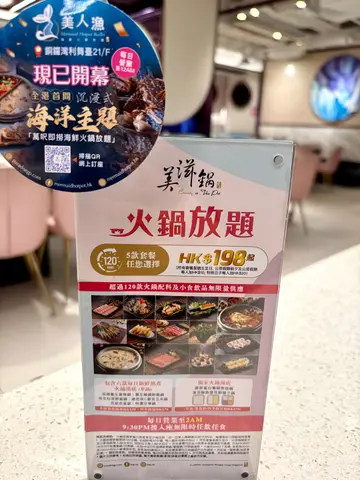 美滋鍋,位於旺角,長期排隊既新加坡火鍋放題,雅致裝潢,等位都有水果茶飲☺️超級豐富甜品小食自助區🍢超過20款甜品選擇 - 提拉米蘇,懷舊砵仔、自動Pancake機、港式街頭小食、炸午餐肉、炸漢堡扒、手撕雞等,仲有生果、醬料等,選擇真係無得輸🤗招牌湯底:膠原蛋白養顏美容鍋💅好濃好好味既湯,飲落好舒服👍🏻飲夠就開始狂叫牛,美國四方肥牛同精選肥牛味道相近,油脂好夠,加葱蒜食好正🤤PRIME牛下肩胛,牛味好濃,肉質薄少少,M6和牛前腿心,較瘦但都重牛味😘三黃鮮雞件,肉質嫩滑,同湯都好夾,韮菜豬餛飩,皮滑韮菜餡味道幾好😗牛栢葉爽身好味,沙白估唔到咁鮮咁肥美!正👍🏻竹籤蝦任叫,又鮮又爽,必食😎菠菜芋絲吸湯都好味,加埋個拉麵,完美食飽😌食物種類多而質素都好好,樣樣野食都高質🥳全新甜品火鍋放題係$198起,性價比之選,開到凌晨兩點仲要9點後入座無限時🤗全新午市無限時任食,12pm-4pm,食到你夠😆依個價錢加埋特色湯底真係超值,快啲book位嗱🤘🏻…查看更多