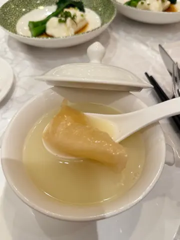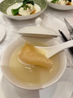 今次喺尖沙咀翠亨邨食飯試咗佢個雙人套餐,經佢地嘅eshop 買仲有折,真係好抵。啲菜式又靚又足料,大家都食到唔停口。餐廳環境好舒服,坐得開揚,唔會逼逼夾夾。蜜汁叉燒皇拼香麻海蜇叉燒又厚又Juicy,啲蜜汁好入味,咬落去甜甜地但唔會搶肉香,口感好豐富!海蜇索晒麻油,好爽口又彈牙,兩樣一齊食層次真係勁豐富。金湯花膠燉雞個湯有花膠啖啖肉,加埋雞肉嫩滑,膠質感夠晒,飲落感覺勁滋補,啲湯頭好鮮甜。御品八頭湯鮑鮮瑤掌鮑魚煙靱又彈牙,冇半點腥味,瑤掌就滑到不得了,兩樣啲鮮味同醬汁好夾,一啖落去真係好滿足。果皮白玉菇斑片斑片煎得靚,魚肉好冧同嫩滑,帶少少果皮香味;白玉菇爽口又Juicy,清新得嚟唔會單調。錦繡欖菜鴨粒炒飯炒飯飯粒分明,完全唔油膩,欖菜嘅香氣帶出所有鴨粒、蛋絲、芽菜嘅味道,食落去好惹味,啲鴨粒仲啖啖肉添。芙蓉燕窩杏仁茶最後甜品,燕窩滑到好似水晶咁,杏仁茶勁香滑又唔會太甜,收尾就啱晒。…查看更多