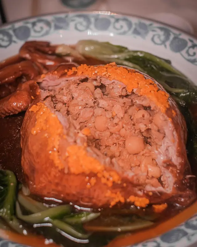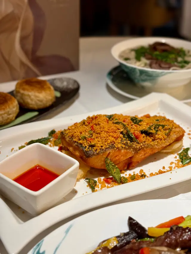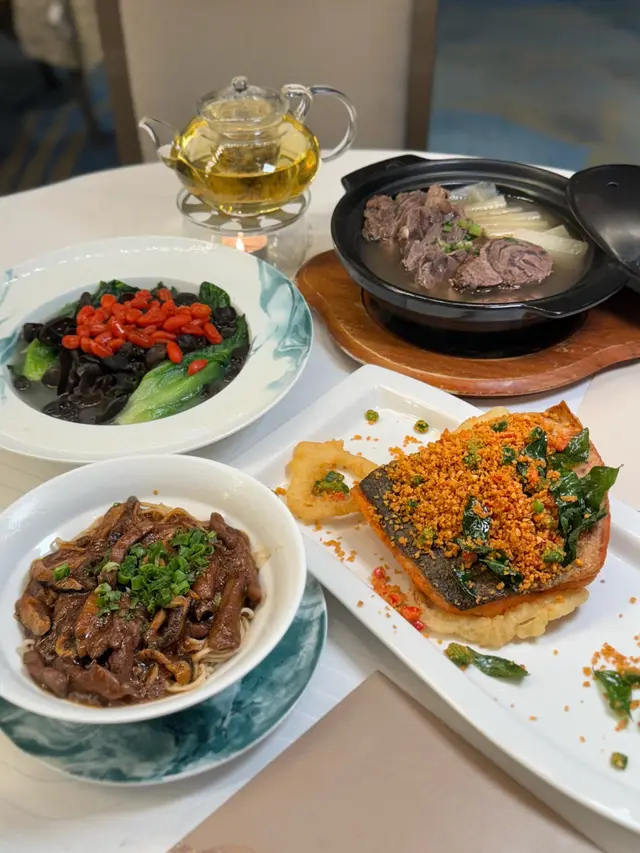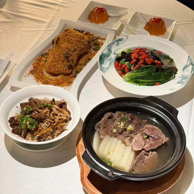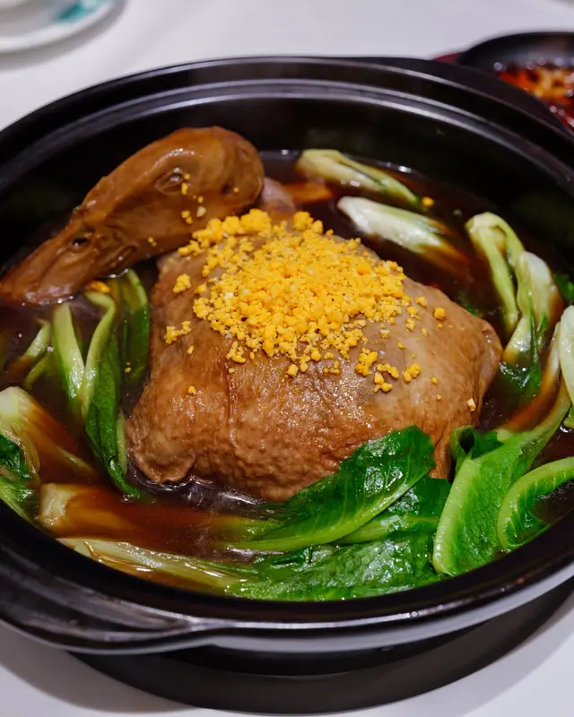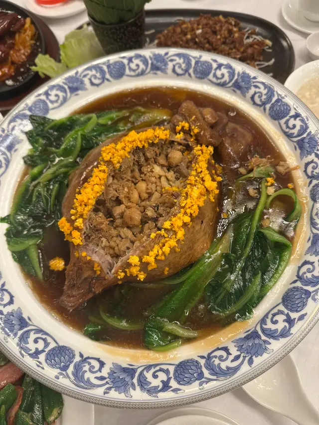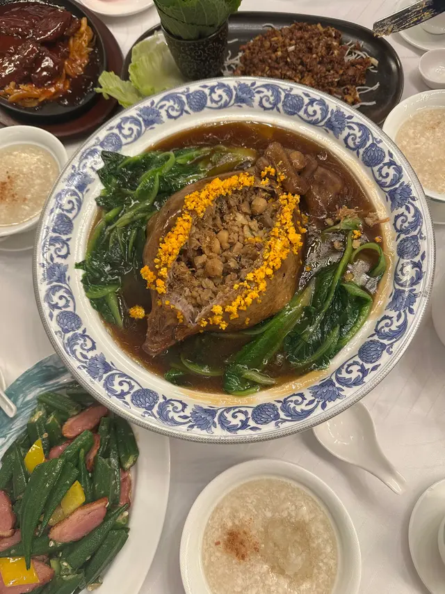 今日得閒,同屋企人去咗翠園飲茶食晏,地點腳,環境都幾舒服,坐得幾鬆動,傾偈都唔怕嘈親隔離枱嘅人。佢哋最近好似搞緊咩懷舊手工菜,又咩雲南菜,咁啱就試下佢哋嘅招牌菜啦!懷舊蓮子八寶鴨:嘩!呢個八寶鴨真係好大隻,一上枱已經聞到好香嘅糯米味。😍 佢哋將成隻鴨起晒骨,再釀入蓮子、瑤柱、仲有其他唔知咩嘅八寶餡料,炸到金黃色再蒸,食落去啲肉好滑好腍,啲糯米又夠晒入味,真係好功夫!👍🏻 蓮子嘅清香同埋瑤柱嘅鮮味滲晒入啲鴨肉度,唔怪得話係以前乾隆皇帝食嘅御膳啦!食完真係覺得好滿足,好有懷舊嘅味道。中式金錢煎牛柳:呢個牛柳都幾特別,將啲牛柳拍到好似金錢咁嘅形狀,再煎到香噴噴,配埋啲西式醬汁,真係中西合璧嘅始祖!😎 牛柳食落去好juicy,唔會太韌,個醬汁酸酸甜甜,好開胃。諗唔到以前嘅香港人咁有創意,將中西兩種唔同嘅風味融合得咁好。😋諾鄧火腿野菌生煎包:呢個生煎包一咬落去,啲肉汁就爆晒出嚟!🤤 佢哋用咗雲南嘅諾鄧火腿,鹹香鹹香,配埋啲野菌,真係好好味。個包底煎到金黃色,脆卜卜,內餡又熱辣多汁,真係每一啖都係享受!😋 雖然係點心,但係都好有驚喜。總體嚟講,翠園嘅手工菜真係好有水準,唔怪得咁多人都話要嚟回味一下啦!下次要試埋佢哋嘅雲南菜先得!👍🏻…查看更多