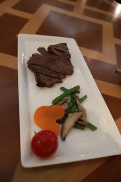 Buffet食物選擇有很多,有50款以上,而且有刺身同壽司選擇,食材都幾新鮮:)另外仲有長腳蟹,長腳蟹有蟹嘅鮮味,我都食左好多!熟食類唔少得牛扒,牛扒配上燒汁味道不錯!而且不會過熟:)餐廳仲每台額外送咗一份和牛,和牛肉質鮮嫩