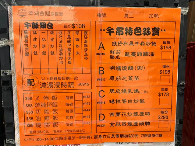 翠湖金閣 (銅鑼灣) 網址: https://s.openrice.com/QrbS0L7uD00 地址: 香港銅鑼灣加寧街13-15號Fashion Walk地下A, C-D號舖 電話: +852 26263066