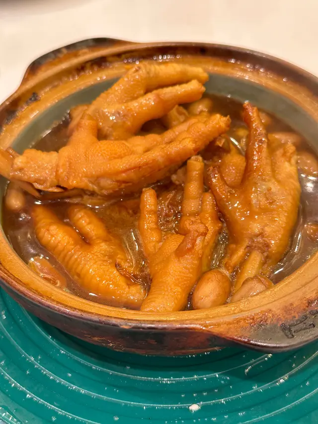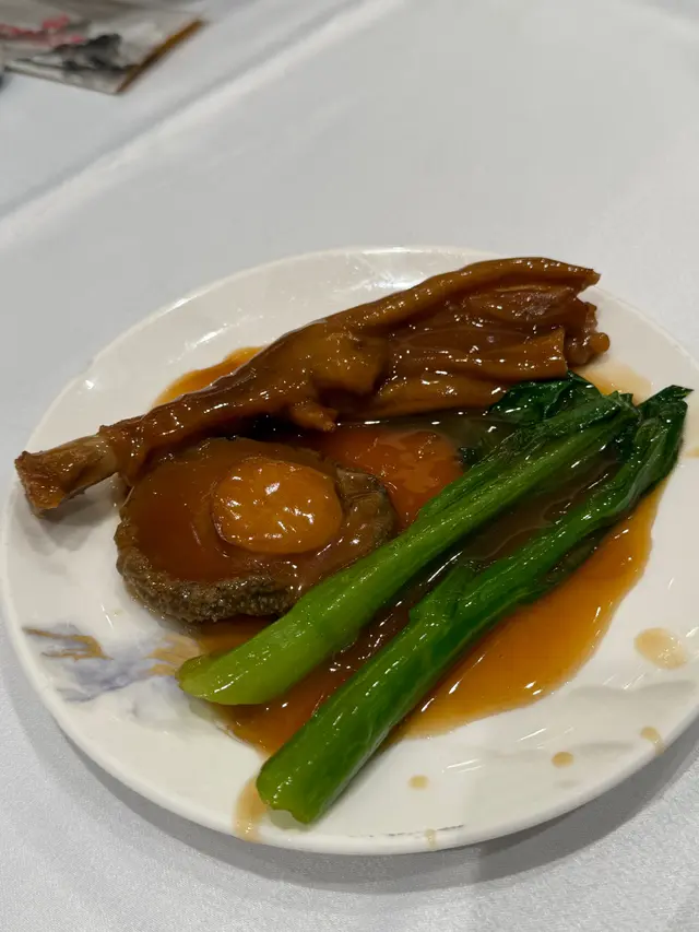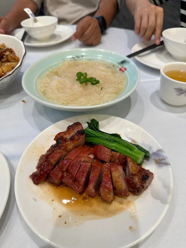 🐟「鱼米之乡」是必点招牌。上桌后淋上龙虾高汤,脆米遇热汤“滋滋”作响,入口鲜甜浓郁,汤底醇厚,脆米增添口感,真的鲜美不腻。🍗「脆皮烧鸡」外皮酥脆透光,咬下去咔嚓一声,鸡肉嫩滑多汁,腌得入味,不油不腻,香气十足。🍲「鲍鱼鹅掌」炖得软糯,鲍鱼弹牙入味,鹅掌一抿脱骨,酱汁浓郁却不过咸,搭配恰到好处。🥣「竹笙花胶鱼翅羹」用料实在,汤底清鲜,花胶滑嫩,竹笙吸饱汤汁,每一口都是满足感。整体来说,菜品扎实、不花哨,吃得出功夫。晚市经常满座,建议提前订位哦!…查看更多