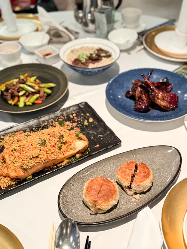 喺中環,依一間中高檔次嘅茶樓一向定位唔錯,坐得舒服嘢食又精緻,枱同枱之間個距離都大,唔驚傾生意俾人聽到。叫咗幾個點心炒飯同埋小菜,嘢食如常精緻幾好食,價位亦都如常偏高。炸嘢少少過油,但係幾好食,配埋個沙律醬幾開胃吓。