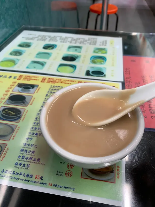 一間十分傳統既中式糖水舖,賣既都係傳統糊類、紅綠豆沙、腐竹、燉蛋等等。 冇太多花巧組合,靠嘅係真材實料,傳統技藝,同街坊價錢。天氣熱關係,簡簡單單,要左個凍腐竹薏米。 腐竹同薏米都十分足料。 腐竹煲到溶晒落糖水入面,形成一種濃稠口感,成碗充滿腐竹味,而唔係水加一片片腐竹。 薏米亦煲到好腍。 雪凍咗,係熱天消署非常好既選擇。另外,糊類亦都做得相當唔錯。星期六日限定,仲有腰果糊。 會做腰果糊既地方唔多,絕對值得一試。…查看更多
