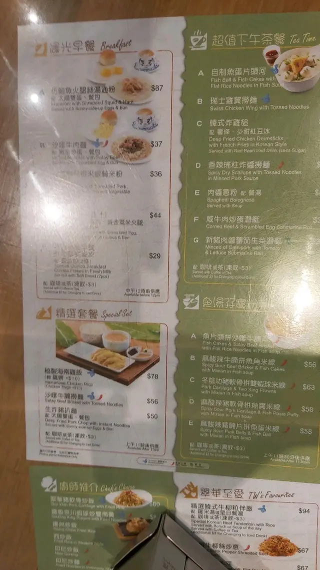 翠華餐廳通常星期日去食佢哋嘅醒神早餐,因為貪快,但係今次就體驗差少少,啲員工好似無視我一樣,我反覆詢問的炒蛋、豬仔飽,做乜禁耐都未出菜,仲搞到我哋遲到!😂🤣不過算啦!佢哋早餐都有好多選擇嘅,有歐陸早餐,張相就影到條魚柳好大條,未食過就唔知係真定假!不過佢哋啲質素好似退步,尤其佢個豬仔包越嚟越細個,我其實細細個都已經食佢哋,喺銅鑼灣總統戲院嗰邊嗰間,而家搬咗過嚟,我都仲嚟食,其實係有一份感情喺入邊,所以其實貴唔緊要,最緊要有競爭能力,食物質素要改善,員工的態度又係唔係好好,而家好多餐廳質素都好高又平!希望改善一下🐱👌我哋食左哥🐱雪菜肉絲米、朱仔 、熱檸水妹🐱鮑腿絲湯通粉、炒蛋、朱仔和熱奶茶我🐱鮑腿絲湯通粉、炒蛋、豬仔和熱檸水餐配咖啡或茶/凍飲要加$3/特飲加$15…查看更多