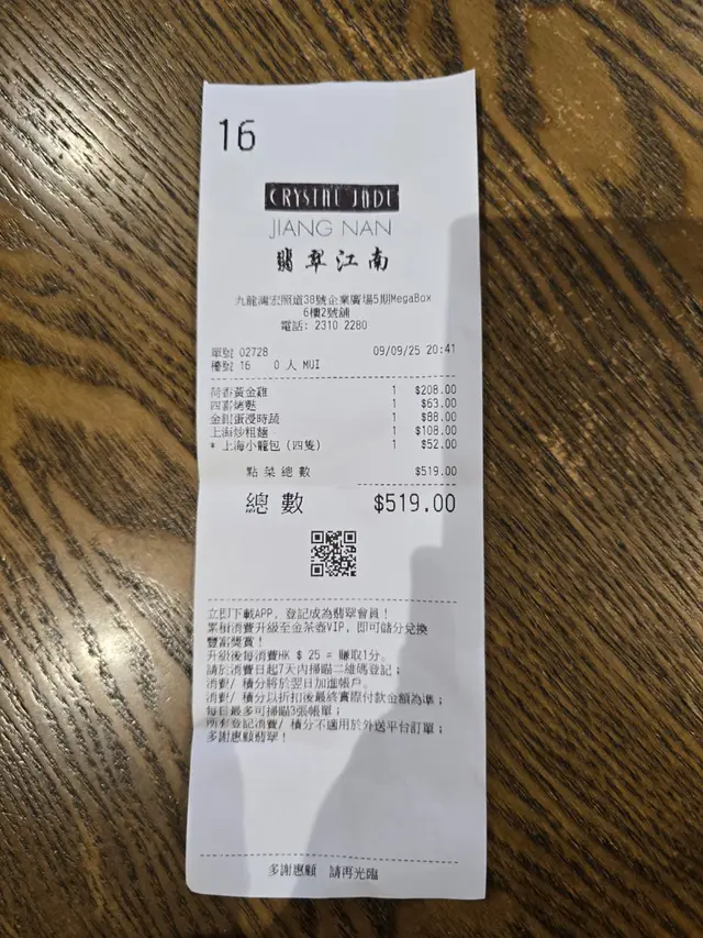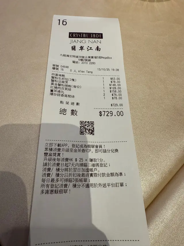 翡翠江南 (九龍灣) 網上訂座享低至88折優惠兼賺Rice Dollars 網址: https://s.openrice.com/QrbS0H4GF00 地址: 香港九龍灣宏照道38號企業廣場5期MegaBox 6樓2號舖 電話: +852 23102280