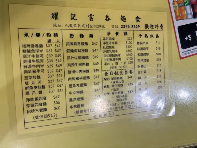 耀記雲吞麵食 (佐敦) 網址: https://s.openrice.com/QrbS0pLG000 地址: 香港佐敦庇利金街31號地舖 電話: +852 23758329
