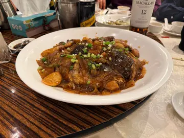 今日 Honey 想食上海菜,於是在附近找到這餐廳,中式裝潢,員工都是有些年紀的人,一問之下才知道原來這裡前身是老正興,原班人馬轉過來,所以是傳統的上海菜,真是找對地方了。晚餐時間已有不少顧客,但都是斯文人,說話輕聲細語,只有一台日本人比較嘈。🫣好想試這裡的東坡肉,可惜遲了一步,賣完了。😬於是點了百葉紅燒肉,青椒絲炒牛肉,最普通的菜式最能試出酒家的水平。💪有點奇怪酒家沒有問我們要甚麼茶,是否全部都是香片茶,不得而知。🤔青椒牛肉絲很快送到,炒得香口嫩滑,青椒牛肉筍絲的組合非常協調,不油膩,不重味,開胃下飯。👍百葉紅燒肉連瓦鍋上桌,熱氣騰騰,香氣撲鼻,紅燒肉半肥瘦帶皮,燜得入口即化,香鮮肥糯,百葉和筍尖吸收了豬肉味汁,減低了油膩感,配合得很好,只是味道稍重,可以淡一些更合我們的習慣。😉這頓飯找回了老上海的味道,也有人情味,老員工在埋單是還不忘講個爛Gag,讓我們會心一笑。😁😁…查看更多