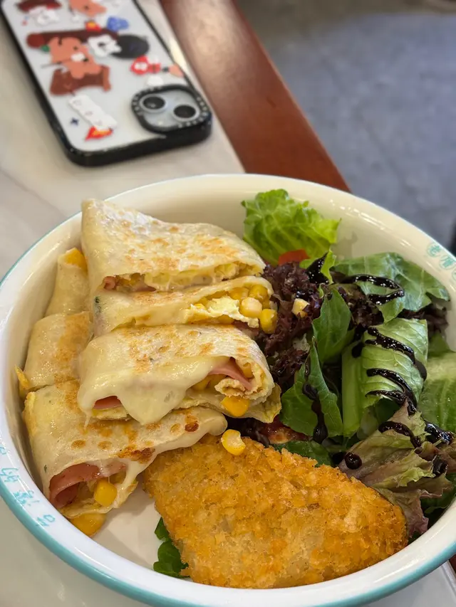 超濃芋泥起司蛋餅 $44 的確係好濃郁好多餡,完全係我想食嘅嘢😋 每一舊都好滿足。細食嘅話分分鐘食唔落成份,因為芋泥同起司都係啲幾heavy嘅嘢,不過我就覺得好正! 食完之後一日已經想encore。但係個醬汁唔太識欣賞,個人覺得完全唔夾,直接食個蛋餅就可以了。古早味冬瓜茶 $18 冇咩特別,都係甜甜地咁,配蛋餅就冇咁容易覺得“漏”,都ok嘅其實見啲便當之類都好吸引,但係我估我再嚟嘅話都係會忍唔住嗌翻蛋餅😂…查看更多