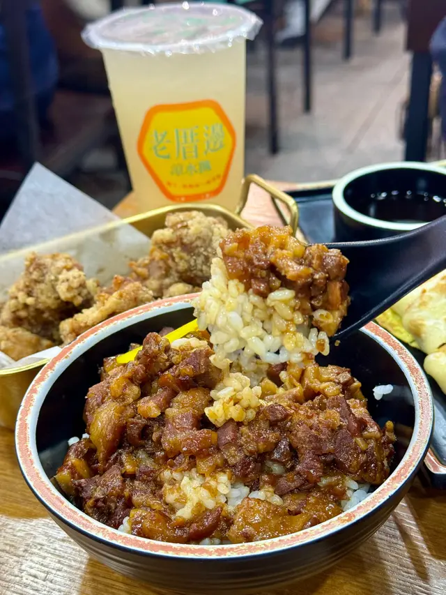 如果想吃價錢親民一點的台灣菜,#老厝邊 會是一個不錯的選擇。店門口白底紅字的圓形招牌寫上了店名,搭配紅色春聯與木框窗戶,延續到店內部裝潢的設計,營造出濃厚的懷舊台味。🍚滷肉飯 (HKD 38/小)肉的肥瘦比例恰到好處,而且滷得很入味。滷汁份量適中,拌著白飯一起吃剛剛好。🍜半筋半肉麵 (HKD 78)紅燒湯頭十分濃郁但不是死鹹那種,帶點滷汁的香氣。滑嫩的牛筋和軟嫩的牛肉份量給得足,滷得入亦很入味。反倒是麵條稍為硬身了一點。✨超濃芋泥蛋餅 (HKD 44)金黃酥香的蛋餅皮外是微甜綿密的芋泥,再加上鹹香的芝士,甜鹹交織,超滿足。🧋珍珠黑糖鮮奶 (HKD 30)選了微糖&微冰,這樣的甜度剛好。不過珍珠稍為腍身了點,但還是有咬口。…查看更多