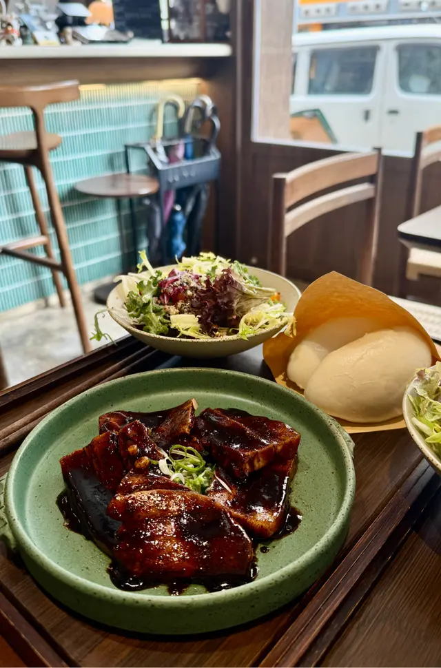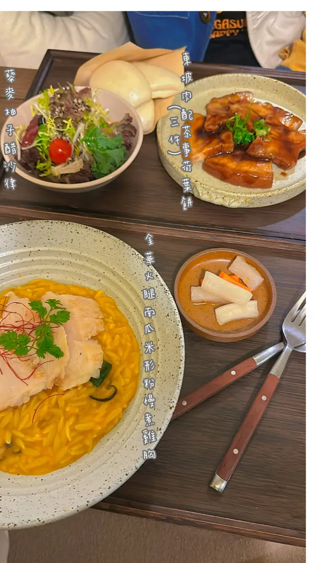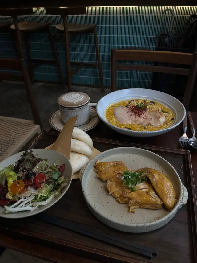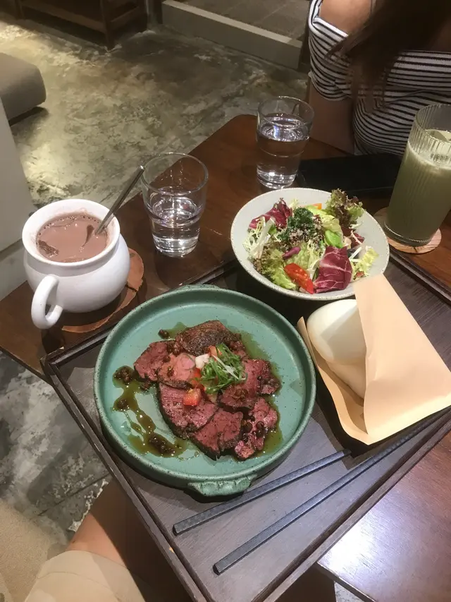 前日同朋友練完gym順便發掘到呢間寶藏茶室🏋️♀️星期六日超爆場!難免係lunch time嘅時候排一陣隊🫡想試要早啲衝🏃♀️呢度大部份嘅菜式都係以中式茶/中菜為主題,菜式有特色之餘,味道亦都非常之好👍🏻慢煮雞胸茶漬飯嚟到呢度又點可以唔試吓招牌菜茶漬飯呢?呢度用上新鮮泡嘅四季春🍵,再加上慢煮嘅嫩滑雞胸🍗,同埋藜麥蘑菇炮製既飯底,撈埋一齊簡直係Perfect match! 再配上附送嘅漬物,酸酸甜甜非常開胃。好想再encore!💕川風擔擔寬蛋面 🍜以四川擔擔麵作為基礎,再加上意式肉醬同埋口感彈牙嘅寬蛋麵,相比傳統嘅擔擔麵,冇咁麻辣之餘又大有濃濃嘅鹹香非常之適合我呢個唔係好識得辣嘅人烏龍茶拿鐵/四季春拿鐵🍵用上低糖豆奶碰撞傳統烏龍茶//四季春,茶感依然好重,非常香濃微燻茶凍配雪葩如果食晒啲鹹點之後想要啲清新啲嘅感覺,呢個茶凍就最適合不過!茶凍茶味超濃唔死甜!加埋雪葩同果汁,帶淡淡木味治癒~…查看更多