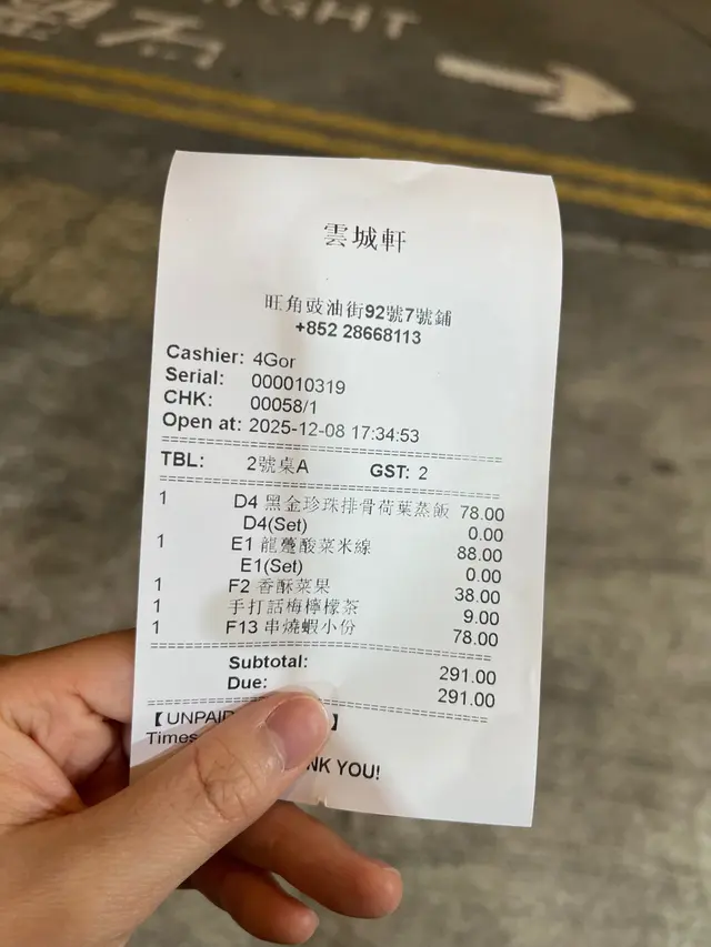 老四雲城軒 (旺角) 網址: https://s.openrice.com/QrbS0deSF00 地址: 香港旺角豉油街92號地舖 電話: +852 28668113
