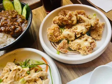 本來午餐約咗舊同事去食泰國嘢,點知爆場。行過見到有台食店,就試試。平時都有食袋裝麵所以都無叫麵。同埋時日套餐唔係牛肉麵配肉躁,選擇有啲困難⋯⋯最後因太耐無食鹵肉就叫咗手撕雞肉躁飯食。午市幾好,叫套餐會有小食跟,就配在炸雞粒。上菜時炸雞粒同鹵肉係常溫,有少少失望。不過欣賞個炸雞沾住啲腐乳汁好好食。手撕雞嗰麻醬唔太濃,個人口味就喜歡傑少少。另外個洛神花唔太甜幾好飲,整體上個腐乳同洛神花茶還會唔少分數。…查看更多