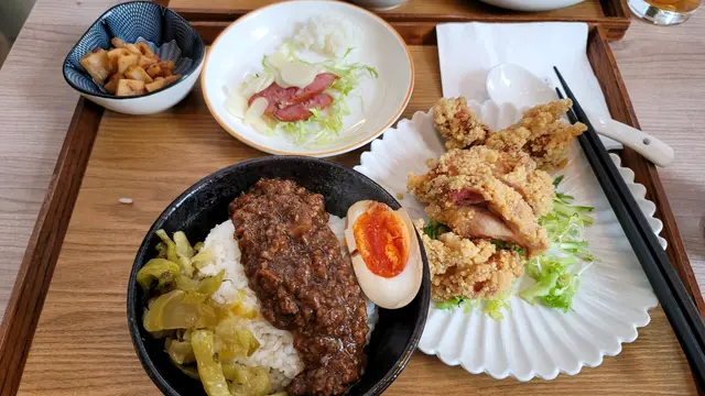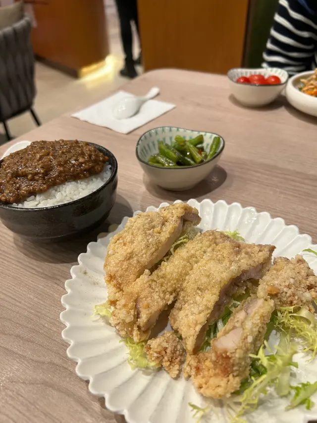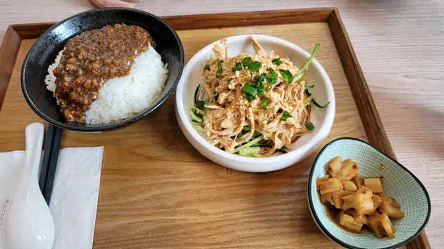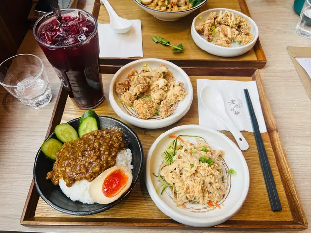 本來午餐約咗舊同事去食泰國嘢,點知爆場。行過見到有台食店,就試試。平時都有食袋裝麵所以都無叫麵。同埋時日套餐唔係牛肉麵配肉躁,選擇有啲困難⋯⋯最後因太耐無食鹵肉就叫咗手撕雞肉躁飯食。午市幾好,叫套餐會有小食跟,就配在炸雞粒。上菜時炸雞粒同鹵肉係常溫,有少少失望。不過欣賞個炸雞沾住啲腐乳汁好好食。手撕雞嗰麻醬唔太濃,個人口味就喜歡傑少少。另外個洛神花唔太甜幾好飲,整體上個腐乳同洛神花茶還會唔少分數。查看更多
