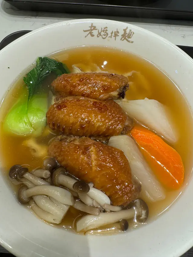 奧海城嘅搵食都唔係咁容易,午餐嘅時候真係人山人海見到老媽拌麵好似冇咁多人,就同同事入咗去食不過總括嚟講真係一個中伏嘅經驗,下次唔會再幫襯清湯雞翼麵$78話說呢度嘅套餐,飲嘢係要再加錢,要加10幾蚊先有一杯奶茶,所以都冇特登再叫嘢飲咁叫咗個清湯雞翼麵,湯底話係燉牛肉湯,都有少少牛肉味清清地OK嘅然後呢配菜就三隻雞翼,滷水雞翼都夠入味,不過以呢個價錢得個三隻真係幾貴至於配菜都係只得幾條香菇、蘿蔔,女仔嚟講都只係啱啱好夠飽夾埋+1都要80幾蚊一個面,真心唔係好抵食查看更多