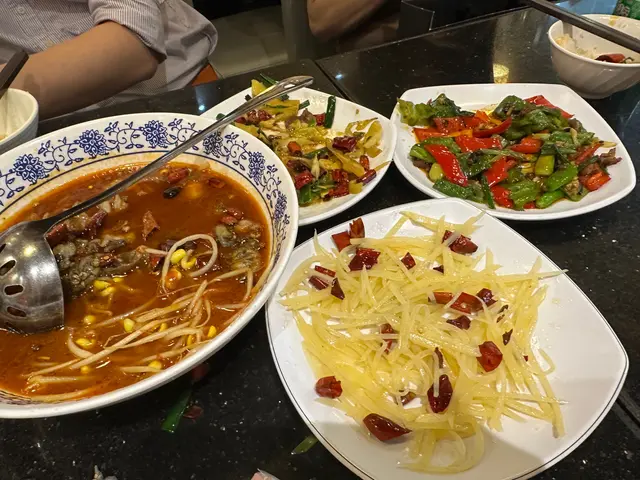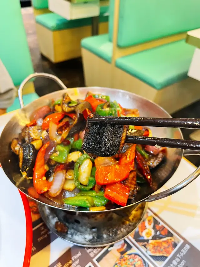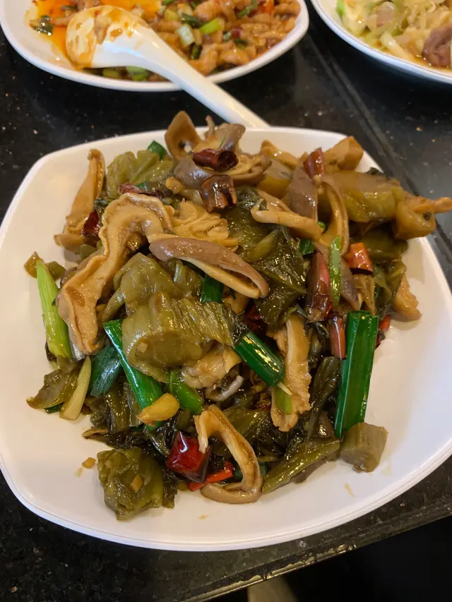 記得好耐之前食過呢間川菜見到佢分店越開越多今次去開佐敦一於再幫襯吓佢!裝修用綠色為主全部都係用梳化位坐得舒服仲見到有唔少人飲緊酒啱晒食辣嘢啤啤佢🍻泡椒鳳爪叫咗個泡椒鳳爪做前菜辣得來酸酸地開胃醒神金湯酸菜海鱸魚酸菜魚份量十足,性價比高👍🏻湯底呈金黃色澤,海鱸魚肉質鮮嫩滑口,最重要係食落去冇骨!湯底配有大量嘅酸菜同埋薯粉,仲可以用金湯送飯辣椒炒牛肉辣椒牛肉炒得好有鑊氣!牛肉嫩口火喉啱啱好而且讚一讚佢哋特別用咗白色嘅雲耳質感比黑色雲耳更加爽口配埋一齊食,口感有層次🤓火爆豬腰有得食內臟嘅川菜店唔多,見到佢有豬腰即刻order咗!豬腰切成條形面頭𠝹左花紋炒熟咗之後做爆花效果🤭配菜有腐竹同埋萵筍,味道食落惹味香口…查看更多