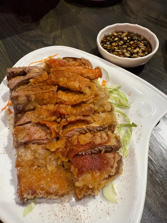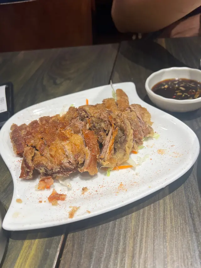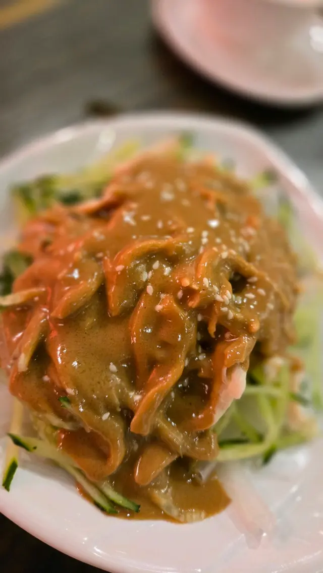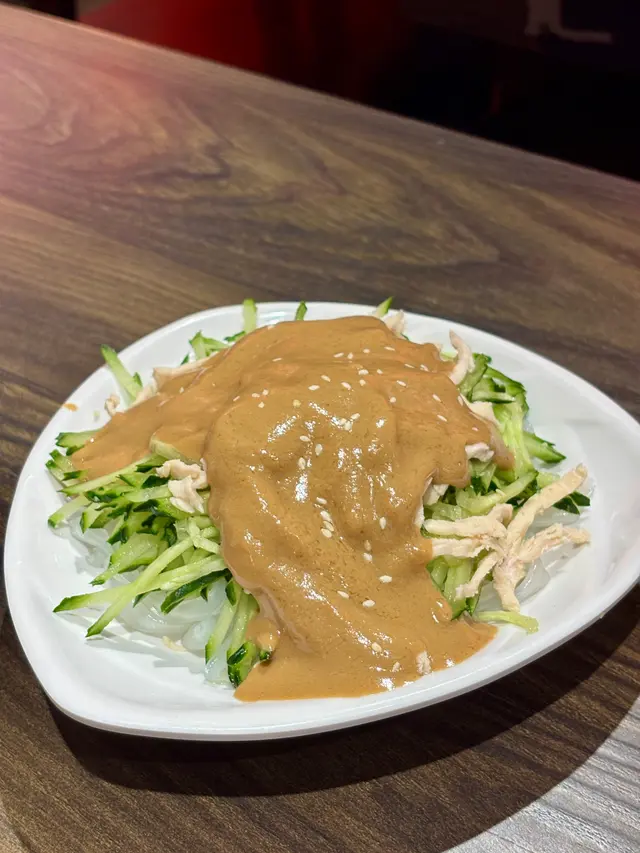 搭輕鐵去到大棠路落車,經過同益街市、元朗千色匯黎到呢間東北菜餐廳,中午係$58一位嘅放題,我地今晚食夜晚,叫左幾個餸,食到勁飽,東北菜分量真係唔可以睇少呀!見到隔離枱叫嘅炒菜、炒飯、炒餸都係大大份,每份都有個小山丘,小鳥胃要小心噢!🍜五香牛肉麵 $50牛展富豪,厚切仲要好多塊,炆到好淋好香,,啲麵多到食黎食去都仲有,有咬口!🧄紅油抄手(10隻) $50抄手大大隻好多餡,撈埋啲蒜泥,好食!🔥松鼠魚(龍利柳) $98呢個手工菜松鼠魚好少餐廳有做,怕骨嘅我揀左龍脷柳,酸酸甜甜勁開胃,淋上醬之後條魚都仲外脆內軟!🐷東北醬豬肘花 $76涼菜我哋嗌咗呢個豬肘花,凍食淋上秘製醋汁,有蔥蒜做配料,肉質爽彈,又係開胃之選!🫘高力豆沙 $13第一次聽呢個,見每枱都有嗌就嗌一個嚟試下,樣似沙翁,食落煙韌,大大隻抵食!…查看更多