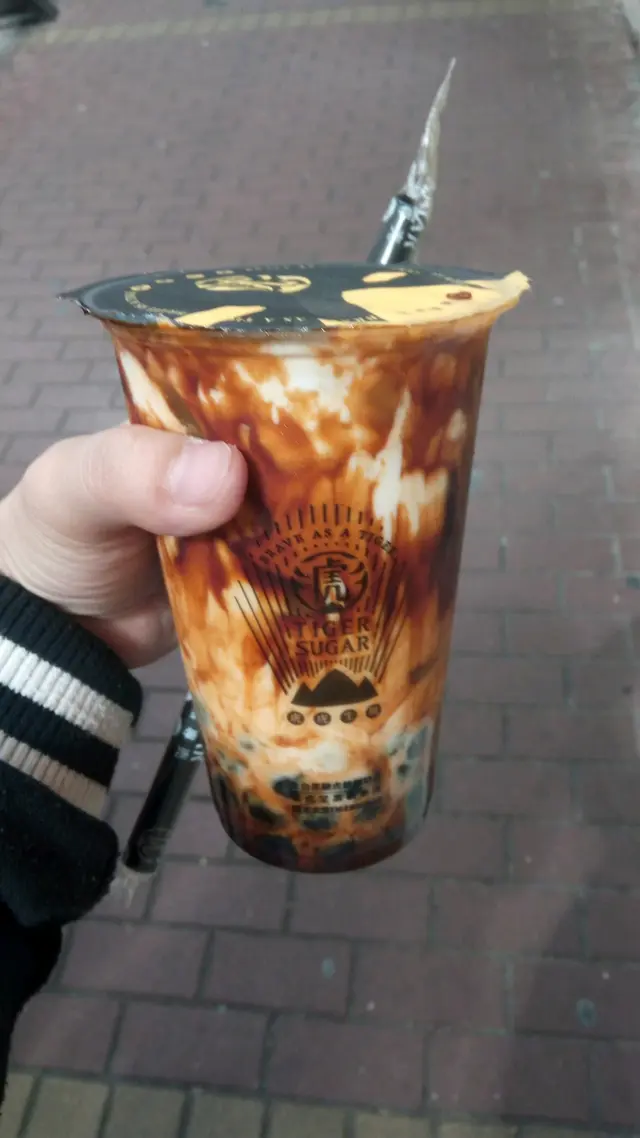 今天就是要一嘗珍珠紅茶厚拿鐵! 來自台灣的老虎堂黑糖專売,憑藉「虎紋掛壁」的黑糖珍珠鮮奶紅遍港台,這次來到銅鑼灣分店,決定試試他們的另一飲品——珍珠紅茶厚拿鐵,看看是否真的能重現台灣夜市那種讓人上癮的甜蜜滋味~ 🔸 珍珠紅茶厚拿鐵|含奶霜 ⚡️ 好味指數:★★★★☆ (4/5) 🧀️ 卡路里:約450kcal/杯 💰 價格:HKD 38 👉 香氣:打開杯蓋後,濃郁的黑糖焦香撲鼻而來,混合著紅茶的醇厚和奶霜的甜膩,瞬間勾起台灣夜市的回憶🌃~ 👉 珍珠:✅ 絕對是亮點!珍珠煮得恰到好處,外層Q彈,中心軟糯,黑糖蜜漬得入味,每一顆都充滿焦糖香氣,咬下去還會爆出微甜的糖漿💥。 👉 紅茶底:茶味濃郁但不苦澀,帶有微微的麥香,和黑糖的甜味平衡得剛好,不會像某些品牌甜到喉嚨發膩。 👉 個人回憶:這杯讓我想起在台北士林夜市,邊走邊喝老虎堂的幸福感——雖然價格貴了點,但味道確實有8成相似! 奶霜稍微偏甜,建議攪拌後再喝,否則最後幾口可能會有點膩😅。 🌟 總評 (75/100) ✅ 優點:珍珠水準超高,紅茶底濃郁🍯。 ⭕ 注意:奶霜偏甜,不愛甜的朋友可以選擇「少奶霜」或「微糖」。 🙆♀️ 小建議:一定要搖勻再喝,讓珍珠, 紅茶和奶霜完美融合,每一口都是濃郁的甜蜜暴擊!🐯💖…查看更多