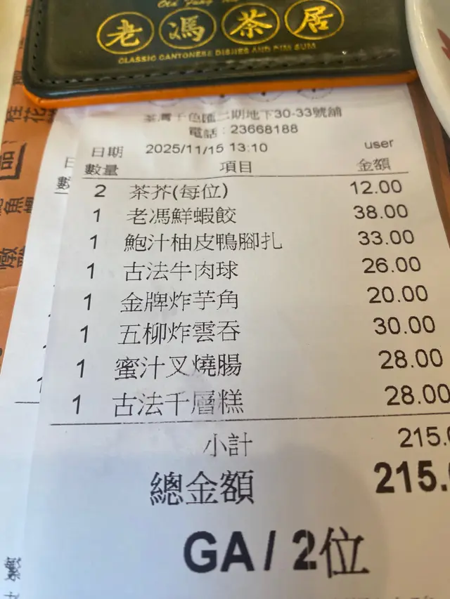 老馮茶居主打港式懷舊點心,裝修走懷舊風格,好有老茶樓嘅味道,喺荃灣區人氣都幾高。今次專程嚟試吓,多款點心味道屬中上,整體表現穩陣,雖然未至於驚艷,但價錢親民,性價比不錯~🔥 必試推介