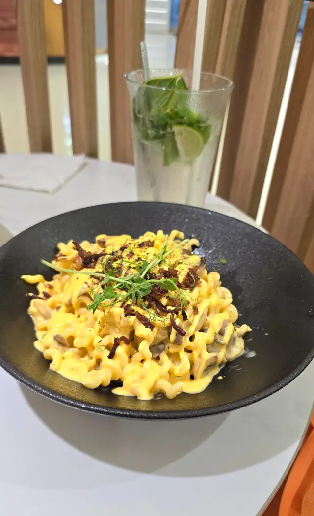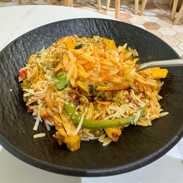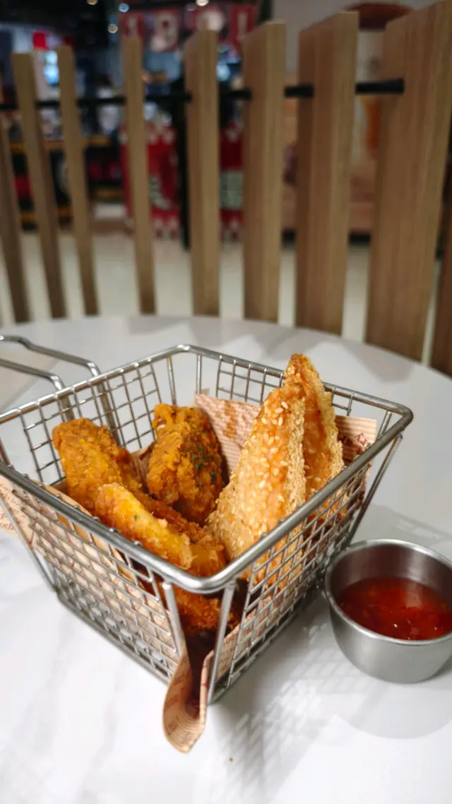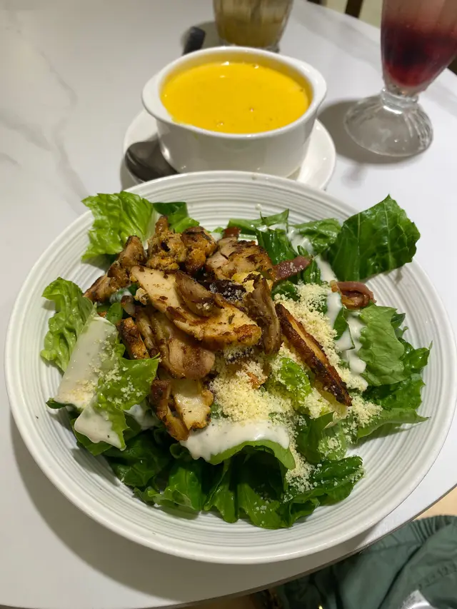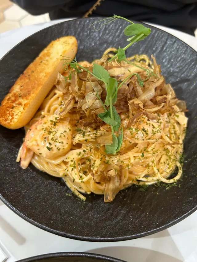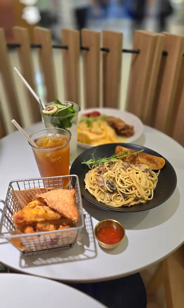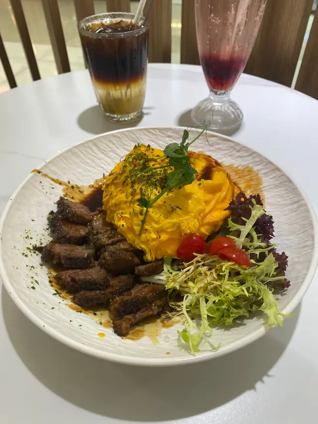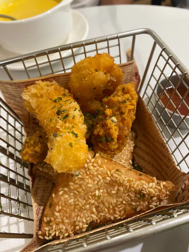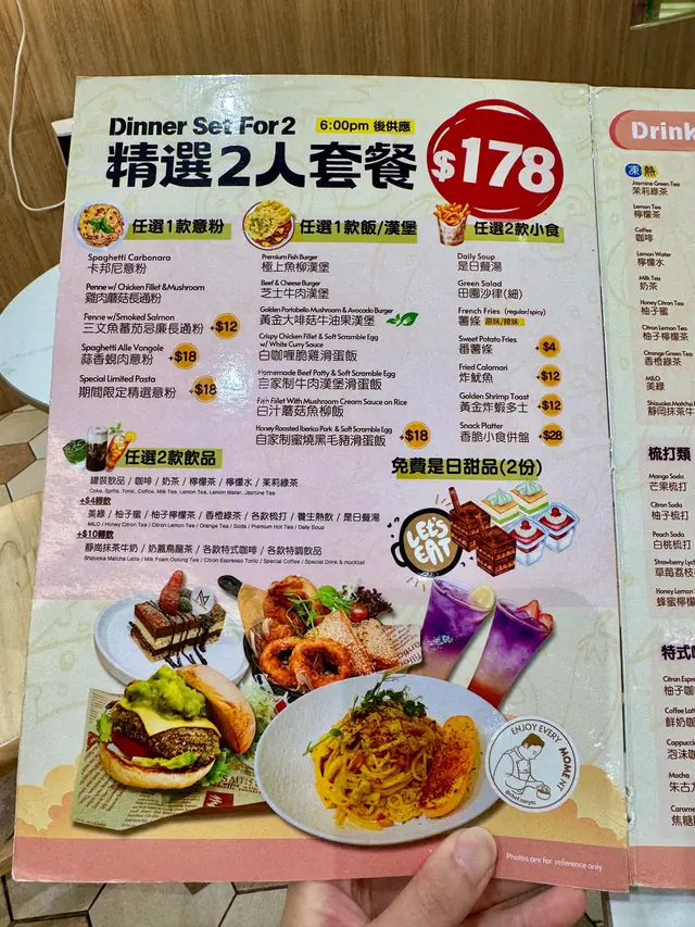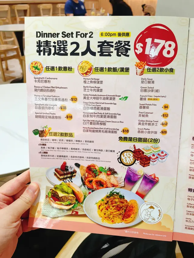 我們在粉嶺中心商場消費,看到「而今小棧」門口的精選二人套餐餐牌很啱食,也合心意。白咖哩脆雞滑蛋飯~白咖哩的味道較其他咖哩清淡,但仍然保留了咖哩的香氣,與同樣是質感幼滑的滑蛋伴白飯,再跟一口酥香脆皮的雞扒吃,口感很美味!卡邦尼意粉~微微的鹹香,濃郁且滑順的醬汁,使麵條裹覆著豐富的味道。炸魷魚~和黃金炸蝦多士一樣香脆可口。黃金炸蝦多士~很滿意這份久遺了的味道。 雜果遮哩~哈哈,也是童年的至愛! 茉莉綠茶~ 薄荷青檸特調~兩款特飲都冰凍透心涼!二人套餐份量很足夠,三人行,多選一份主食和甜品。煙肉芝士卷卷粉~鹹香脆口的煙肉,有趣的卷卷粉造型,被濃稠芝士醬汁緊緊地包裹。焦糖芝士蛋糕~焦糖令香濃芝士蛋糕增添甜美。…查看更多