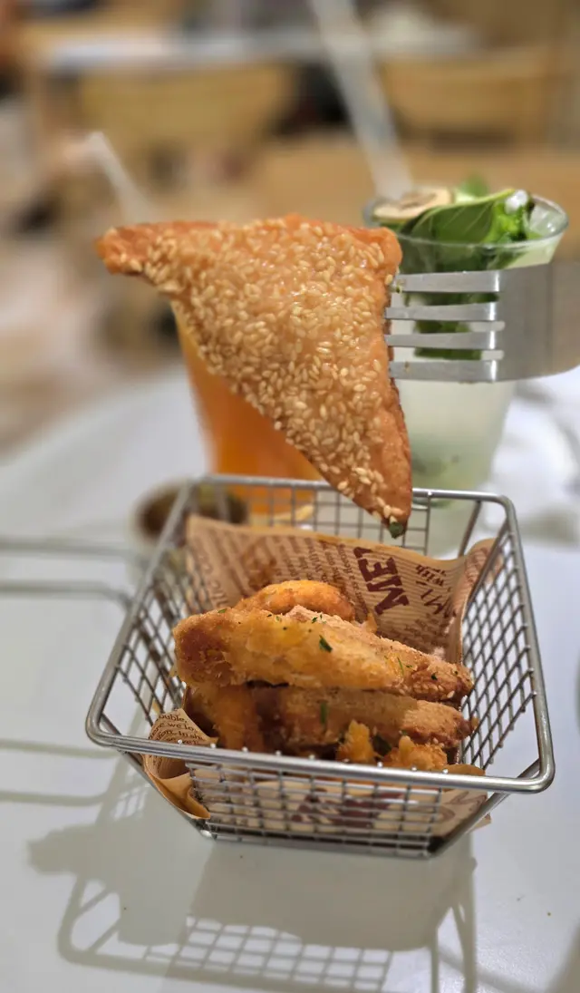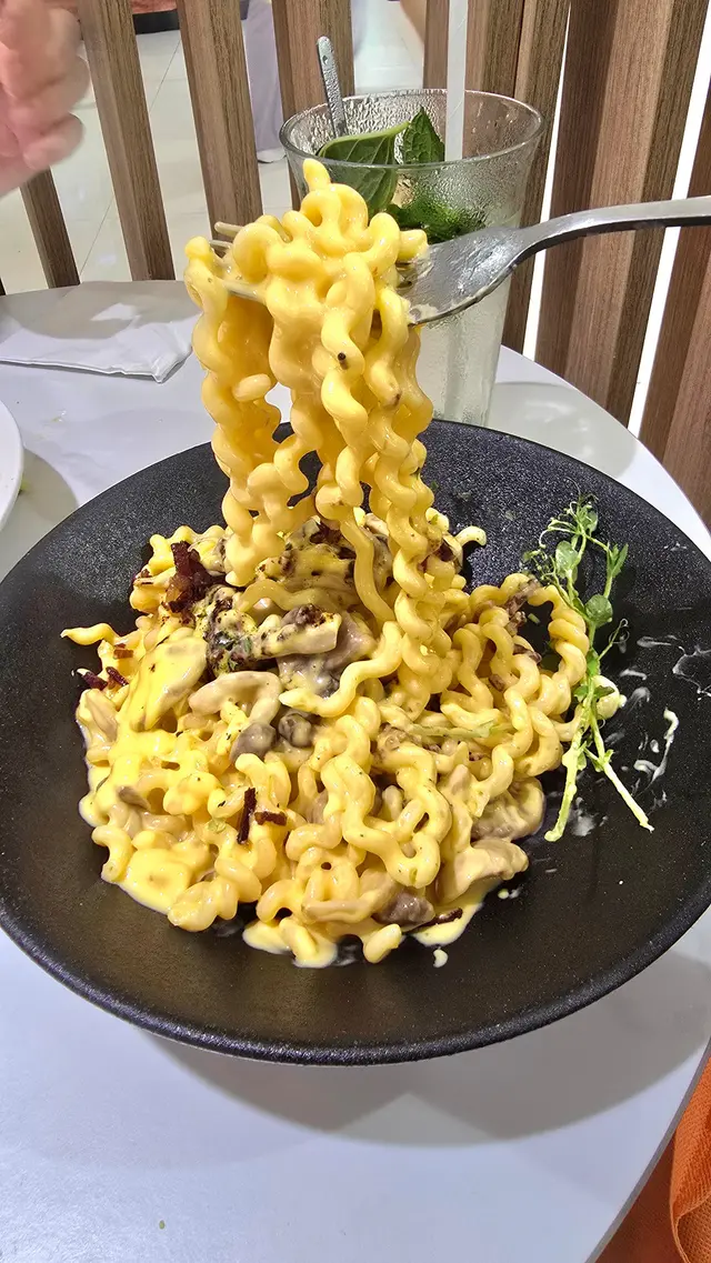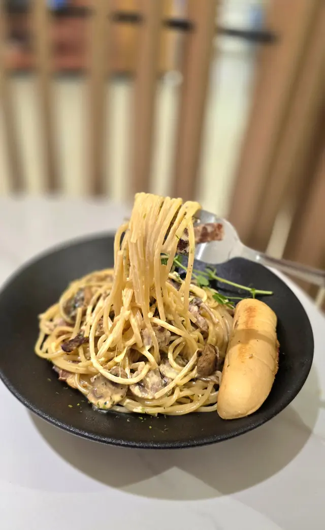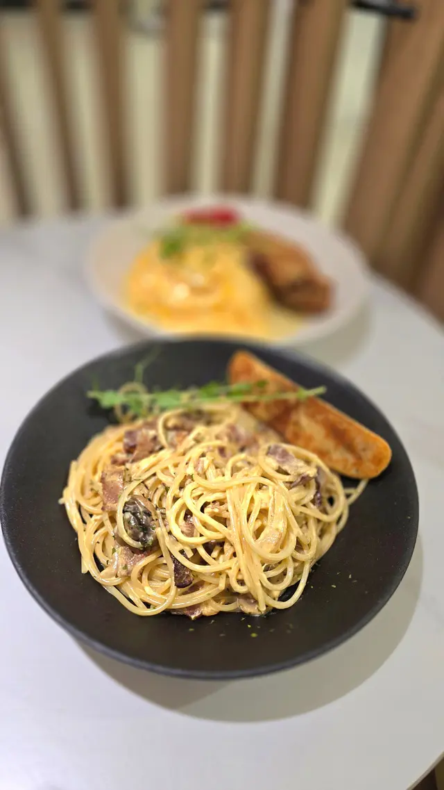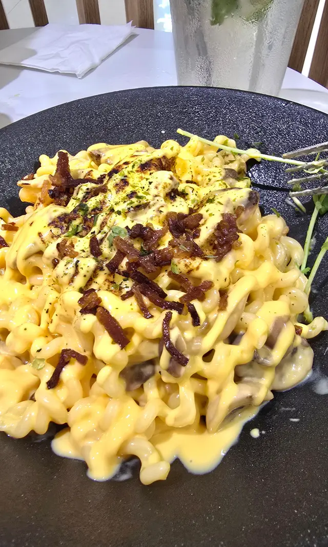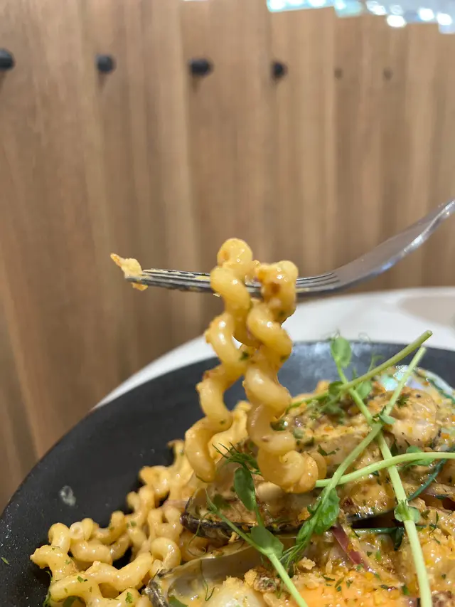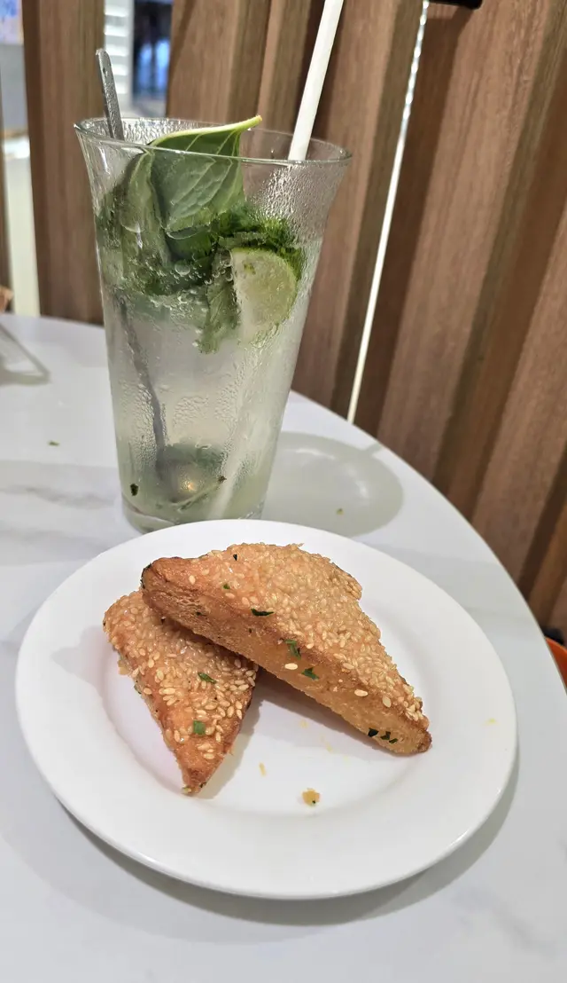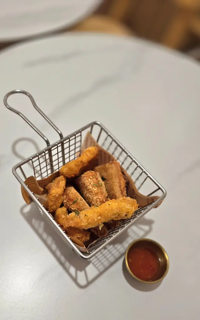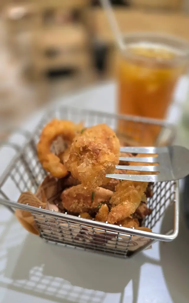 我們在粉嶺中心商場消費,看到「而今小棧」門口的精選二人套餐餐牌很啱食,也合心意。白咖哩脆雞滑蛋飯~白咖哩的味道較其他咖哩清淡,但仍然保留了咖哩的香氣,與同樣是質感幼滑的滑蛋伴白飯,再跟一口酥香脆皮的雞扒吃,口感很美味!卡邦尼意粉~微微的鹹香,濃郁且滑順的醬汁,使麵條裹覆著豐富的味道。炸魷魚~和黃金炸蝦多士一樣香脆可口。黃金炸蝦多士~很滿意這份久遺了的味道。 雜果遮哩~哈哈,也是童年的至愛! 茉莉綠茶~ 薄荷青檸特調~兩款特飲都冰凍透心涼!二人套餐份量很足夠,三人行,多選一份主食和甜品。煙肉芝士卷卷粉~鹹香脆口的煙肉,有趣的卷卷粉造型,被濃稠芝士醬汁緊緊地包裹。焦糖芝士蛋糕~焦糖令香濃芝士蛋糕增添甜美。…查看更多