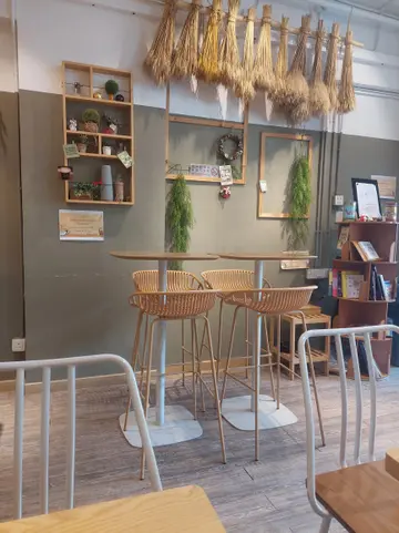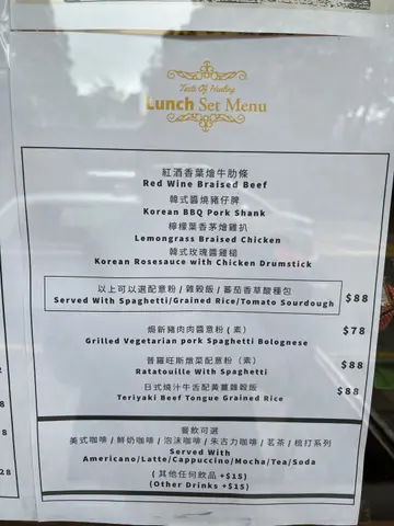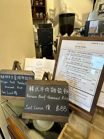 地段清靜, 環境舒適, 適合一家大細或良朋好友到此一聚, 共享美好時光!是日與朋友慶祝生日, 驚喜一浪接一浪!店主細心佈置, 掛上"HAPPY BIRTHDAY", 令壽星女驚喜萬分, 開心不已!午餐選了「韓式泡菜豬肉拌飯」, 泡菜配豬腩肉~不油不膩, 伴有新鮮菠菜、香菇和翠玉瓜~健康有益, 黃薑飯配香煎太陽蛋~蛋香提升味道一絕, 份量和味道配搭得剛剛好, 有驚喜!飯後慶生, 店主特意新鮮烤焗「流心果仁撻」, 驚喜的是流心, 是店主自家秘製糖漿, 不甜好香, 牛油曲奇撻皮, 酥香味美!值得推介必定要試!溫馨提示:如果想食新鮮烤焗「流心果仁撻」, 必須提早預訂!