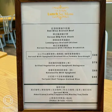 呢間Cafe幾特別,租咗兩個細細相連既舖位,一個係廚房兼落單區,另一個係用餐區入到去嘅環境同音樂好柔和,令人好舒服👍👍Lunch有七個選擇,原本想食牛肋條但係未夠一點已經賣晒🥲👅韓式醬燒豬仔髀配蕃茄香草酸種包好彩呢個豬仔髀都幾入味幾好食,肉質又夠腍,塞翁失馬!😌個包烘到好脆,帶清新香草味,出色😋👅Mocha轉豆乳個餐本身包mocha,我加左$5轉soy milk豆乳味濃郁突出👍份量唔多但係高質,有機會會再嚟支持老闆咁用心嘅經營🫶🏻