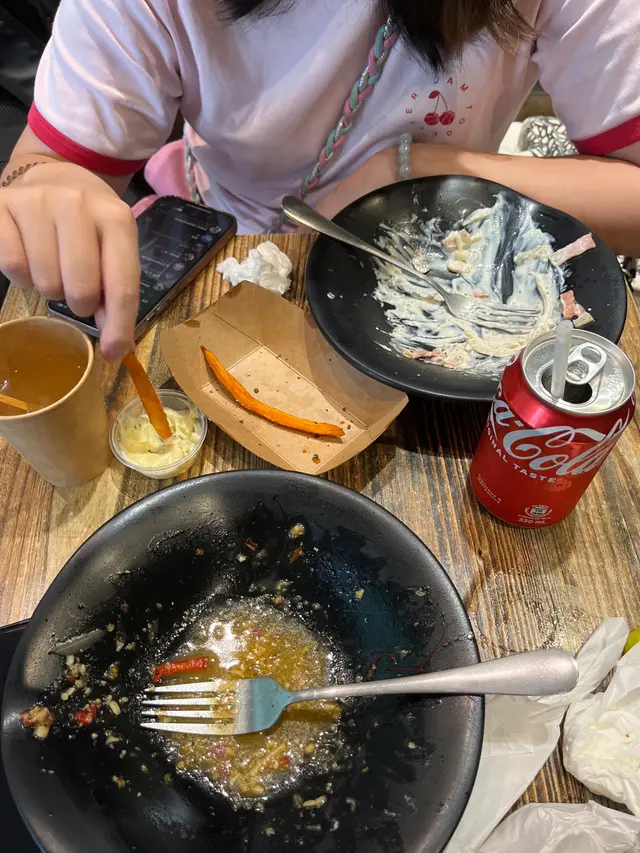 💫招牌黑松露卡邦尼意粉對比起其他舖頭黑松露醬算係偏少🤔不過煙肉蘑菇洋蔥呢啲比較多🤣醬汁都好多🤤我記得食到最後仲有好多汁淨~不過略嫌啲汁唔夠creamy同濃味🥹意粉質地軟熟👍🏻 呢個價錢嚟講呢個質素已經唔錯😽-💫炸番薯條番薯薯條嘅表面加咗啲糖粉~而且炸得超脆!一上到嚟熱辣辣超好食🤩不過個黑松露蛋黃醬完全食唔到黑松露味😣同埋我覺得蛋黃醬唔係好夾所以唔點醬比較好食🤔鍾意食番薯條嘅朋友仔可以一試!😆-小店環境細而且位置唔多同埋冷氣唔係話好勁所以會有啲熱🔥紅橋呢個位置絕對方便屯門嘅朋友仔🤣-整體評價:3.6🌟…查看更多