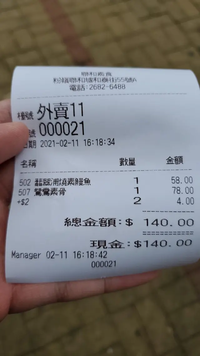 聯和素食 (粉嶺) 網址: https://s.openrice.com/QrbS01g0100 地址: 香港粉嶺聯和墟和泰街55號A地下 電話: +852 26826488