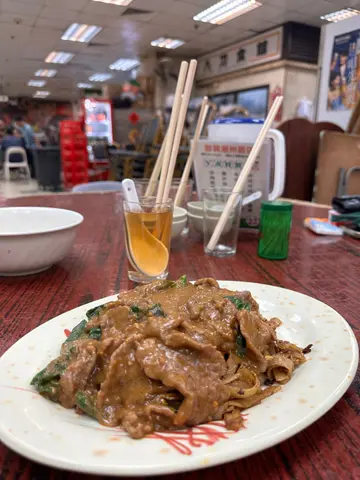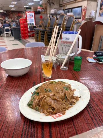 🔥潮式蠔仔粥:綿密順滑似絲綢一上枱就聞到陣陣大地魚香,粥底煲到「起膠」嘅程度,用湯匙舀起時可以見到完美嘅掛勺效果。師傅透露秘訣在於用瑤柱、大地魚同豬骨熬足多個鐘做湯底,再加入珍珠米慢火煲煮。米粒完全爆花,形成綿密順滑嘅質感,入口即化,但神奇地保持到米香。🔥沙嗲牛肉炒河:鑊氣沖天之作 牛肉炒河:嫩滑有致嘅秘密師傅逆紋切薄片後,用獨門配方。牛肉炒到剛好轉色,保持住粉嫩嘅肉質,咬落去有驚人嘅juicy感,完全顛覆茶餐廳牛肉又乾又韌嘅刻板