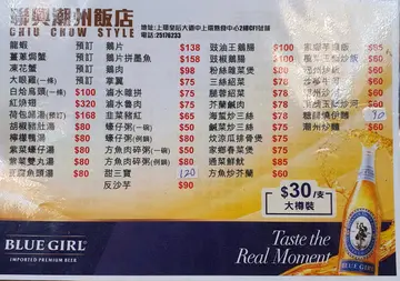 呢間都係叫X興,都係喺上環,不過比起其他食潮州菜嘅「興」,呢間明顯價錢平好多但係質素又唔錯。鹵水拼盤嘅鹵水夠香夠入味,好欣賞佢嗰個鹵水墨魚唔係油到橙色,鹵水豬腩肉大部分都唔係好肥,不過其中有一嚿係成舊都係肥膏。潮式春菜煲好多春菜,開頭都驚佢好鹹,不過好彩佢又唔係喎,因為好多地方食咁樣春菜煲都比較鹹。普寧豆腐個味就比較淡,一定要點佢嗰個汁先至好味。白飯魚煎蛋好正,老闆娘話今日啲白飯魚靚所以叫我哋椒鹽或者煎蛋,我哋揀咗煎蛋。四個人每人百幾蚊真係抵食。