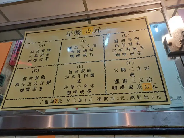 60 year history place only this resto standing here without changing. no one would notice it when walk by. only locals do.here food. breakfast is good. bake porkchop rice is good ❌❌❌the rest are bad. to be very honest i dont recommand ppl eat here. quality is still keeping 80s. someone like vintage, old school stuff will like it. but the food quality shall increase. but here not. insiting their old fashion food. only price surging.here my fav. i show u.65$ bake rice. its totally crazy big. i cant finish it so i need a take away box for my dinner. quality good.1. fries rice bottom dry and nice2. pork chop big and tinder3. juicy tomato sauce top.4. bake super hot.will come back.查看更多