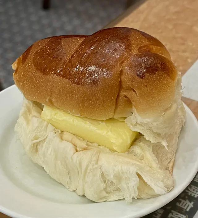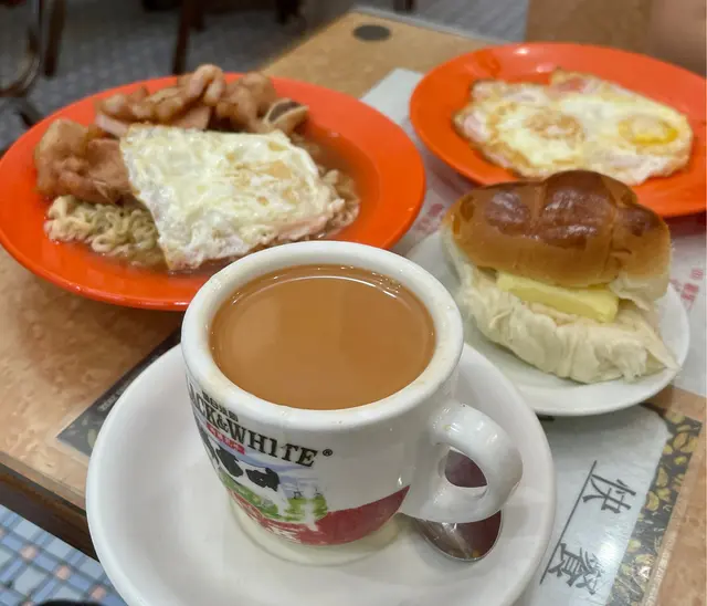 一間經營超過60年的「聯華茶餐廳」,坐落於西營盤人來人往的正街之中,店內保留懷舊的木卡座、磁磚牆面、格子地磚、吊扇 及 難得一見的閣樓。多年來保持古早風味,值得專程過來打卡,懷舊一番!📸喜歡這裏的鮮油甜餐包,麵包鬆軟,配上厚切牛油,比吃多士更加吸引。😋煎得微脆嘅午餐肉,配上燶邊太陽蛋及即叫即煮的出前一丁,也是相當不錯;熱奶茶香滑但茶味偏淡,只是好一般。#鮮油餐包 #熱奶茶#餐肉蛋出前一丁#聯華茶餐廳 (西環)地址: 香港西環西營盤正街28號地舖電話: +852 25401563查看更多