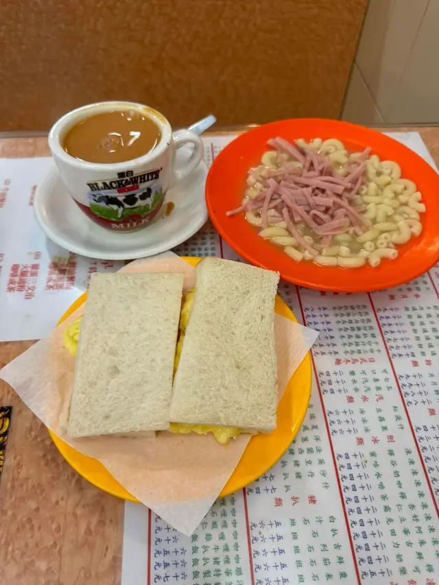 我在西營盤正街的「聯華茶餐廳」享用了早餐B,總共花費$37,感覺相當實惠。點了雞蛋三文治、火腿通粉和熱奶茶。雞蛋三文治是整套早餐的靈魂,雞蛋煎得恰到好處,口感滑嫩,讓人精神萬分。火腿通粉的味道稍微平淡,不過不失,若能加點調味會更好。熱奶茶的水準非常高,茶香濃郁,奶味十足,讓人一口接一口。整體而言,今天的早餐讓我感到非常滿意,特別是雞蛋三文治的表現,讓我心情愉快。查看更多