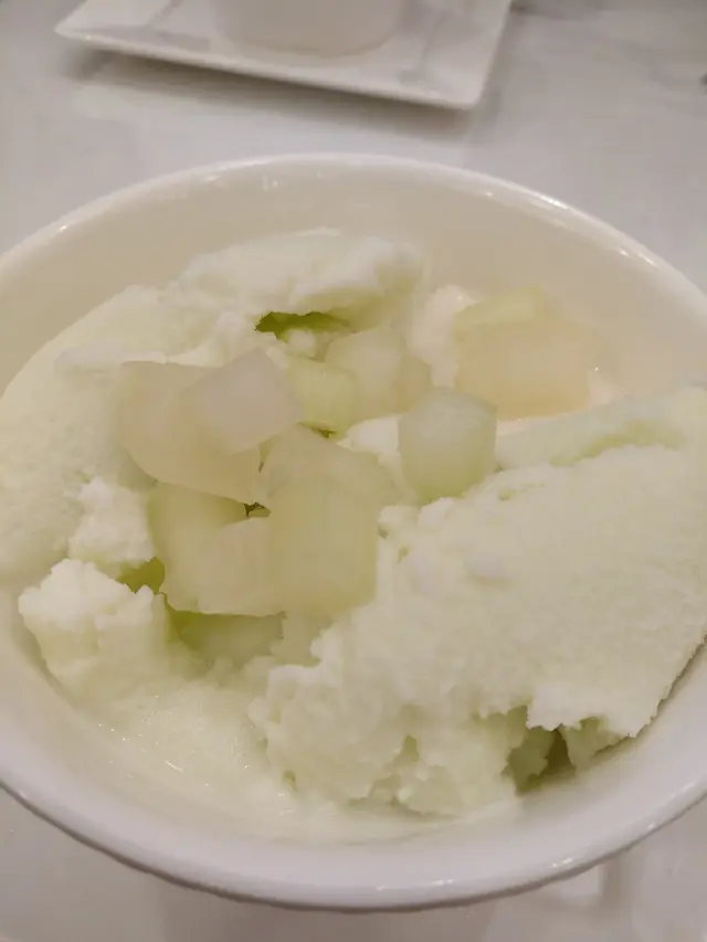 自小光顧無數次的甜品店,當附近的新開甜品店林立後,反而少吃了,今次決定去懷念一下舊時的味道。鮮雜果西米 因為很少吃蔬果,又怕胖的關係,所以點了鮮雜果。雜果的種類挺多,香蕉、蜜瓜、哈蜜瓜、西瓜、還有一顆小士多啤梨。士多啤梨太小了,如果大顆點會更好鮮果挺新鮮,剛好都是自己喜歡的沒有太多汁,只有一些芒果汁,感覺沒有那麼會易發胖,但又吃到甜的西米有點少,而且有點過稀,沒有什麼口感芒果布甸 配上花奶後,布甸有點過甜很多芒果粒口感適中,不會太硬
