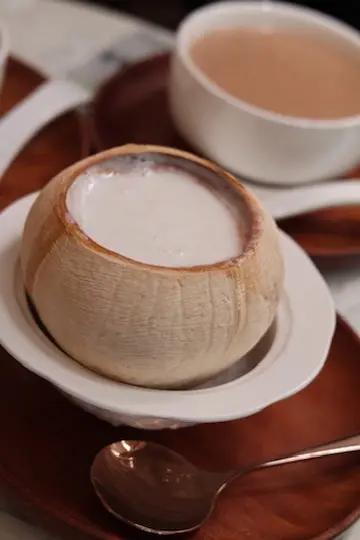 天氣涼啲飲返碗糖水啱晒,首選桂花糖水配湯圓。湯圓搭配桂花糖水味道清甜不膩,桂花的香氣與湯圓的Q彈口感相得益彰,整體風味清新優雅。桂花的淡雅香氣能中和湯圓的甜膩,帶來清爽的口感,適合作為清淡的甜品。秋冬時節要滋補為上,椰皇燉燕窩雙皮奶最岩,椰皇燉燕窩雙皮奶味道是椰香清甜、入口滑溜,口感豐富。這道甜品的特色在於結合了濃郁的椰子香、滑嫩的燕窩和綿密的雙皮奶,整體味道不會過於甜膩,並帶有椰子本身的清甜味,滋補一流!.…查看更多