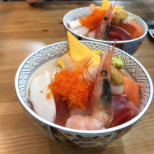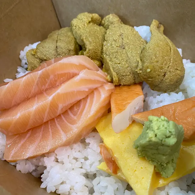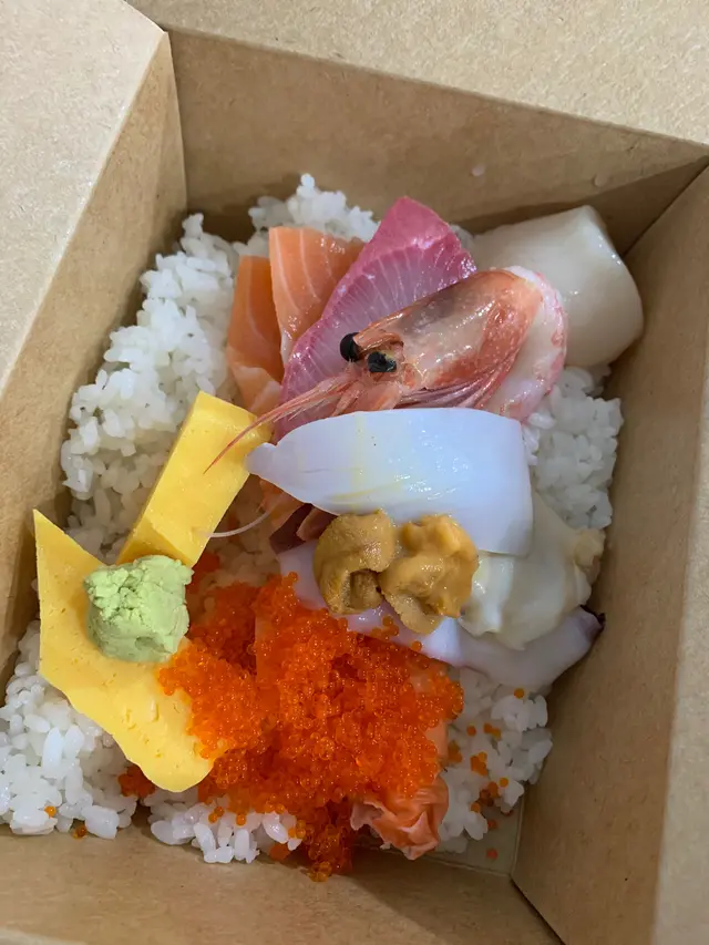 有晚放工去觀塘駱駝漆搵野食見到呢間魚生飯都幾吸引🤤首先左邊鋪係落單同準備野食而堂食嘅話就要去返右邊鋪~因為位置唔多 又係晚飯時間都等左半個鐘左右先有位 好彩駱駝漆都多野行😂餐牌唔算非常多 但熱食小食燒物都會有👅當然主打都係刺身啦~叫咗個刺身魚生飯刺身好大塊好厚身🤤 超級足料平時魚生飯都係飯多魚生少今次食得好滿足🤤刺身有三文魚 帶子 刺身蝦等等 種類都幾多仲有海膽!海膽好鮮甜👍🏻 感覺都幾新鮮————————————————————————總結用餐區域因為始終唔係一般餐廳咁加上外賣店嘅包裝 環境同賣相略為失望少少不過店員都好nice好幫手 態度都好好價錢係工廠大廈黎講唔算平 但味道亦不比出面餐廳嘅魚生飯遜色值得一試👍🏻查看更多