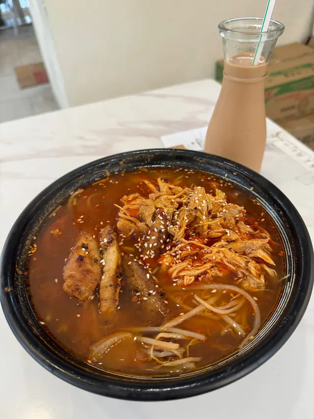 平時去顯徑多數都係食打冷,今次就黎到顯徑試吓一間裝修似cafe多啲既米線專門店😉我呢就晏晝時間去所以人流唔算太多😗😋自選配搭湯米線(麻香手撕雞配濃香沙嗲湯底)平時食開10小辣既我呢就覺得對我嚟講就有少少辣既😁有野飲都頂到下😂手撕雞分量算多😙雞亦都幾滑😗米線既質地係我鍾意既米淋口感岩哂我😉😋樽裝招牌手拉奶茶 我個人鍾意茶濃既奶茶,咁呢樽我覺得奶同茶既比例都唔錯😌舔舔脷指數👉🏻5😋/10😋滿分 試下無妨😋查看更多