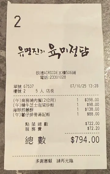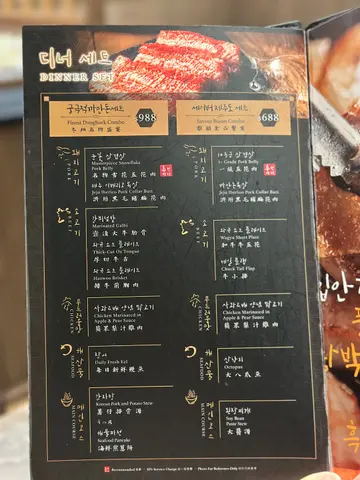 啟德AIRSIDE匯集不同菜式餐廳, 而且相連港鐵站, 絕對係gathering好選擇。今晚就同多年冇見嘅舊朋友選擇了這間主打烤肉嘅餐廳, 品嚐了一頓豐富又美味嘅烤肉dinner。入座後, 店員協助加入泡菜爐邊蛋同埋芝士粟米, 呢兩款係免費無限任加, 而其他韓式配料只供一次性, 追加需額外收費。我地點了數款烤物同埋熟食share。【鹽燒新鮮魷魚】HK$110魷魚不能烤太過火, keep到口感爽滑同埋有少少鹽帶出鮮味。【嚴選極長牛舌】HK$188超長厚切牛舌賣相有特色, 烤嘅過程滲出血水, 表面烤至微微金黃, 香口爽滑有肉汁, 牛脂香氣濃郁。【花卷五花肉2.0(全份)】HK$268肥瘦比例平均, 五花肉薄切粉嫩, 每片肉夾起好易散, 所以店員特意於網燒上放咗個鐵板for 烤五花肉, 烤至帶些少焦濃, 入口不會感覺過於油膩, 食到淡淡肉香。【韓式馬鈴薯煎餅】HK$128外層微脆, 不覺半點油, 薯香味十足, 沾上酸甜醬汁更開胃。【韓式炒粉絲】HK$92韓式粉絲熱辣辣, 散發香氣, 粉絲盡索鹹甜汁料, 搭配多款蔬菜絲, 口感豐富。【意大利芝士蛋糕】HK$58蛋糕鬆軟細膩, 散發陣陣Tiramisu而不會有苦澀味。【焦糖布甸】HK$45布甸軟滑, 近乎入口即化, 甜甜地, 超正。食熱辣辣烤肉, 配上冰凍梳打, 降溫又解渴, 兩款同樣果味突出, 清新解膩。【菠蘿梳打】HK$42【青檸梳打】HK$42…查看更多