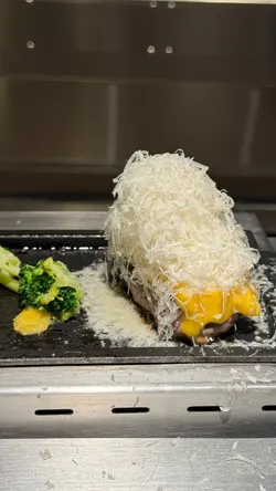 🍴芝士芝士口味是在原味基礎上加上一片香濃的芝士,然後店員會在上面刨出一絲一絲的芝士,看上去十分療癒,令漢堡扒更加幼滑可口,打卡必點