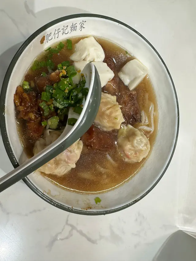 香港仔開咗間新嘅肥仔記麵家,今日去試吓食,有全日粉面套餐,叫咗碗牛筋雲吞魚片河,上菜速度好快,啲雲吞都好大隻,牛筋都有好多,辣椒油好夠辣,三餸都淨係$40,都好抵食。…查看更多