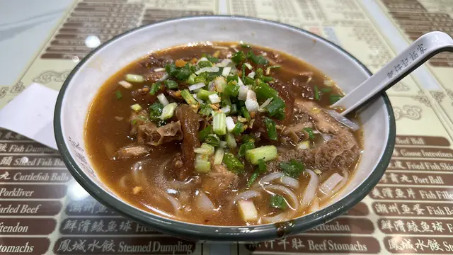 肥仔記麵食 (香港仔)食物: 魚旦魚肉春卷河凍豆漿魚片牛腩河魚旦魚肉春卷河:呢個係「全日粉麵套餐」,包一個餸,一個自選粉麵,加一碟油菜,同一杯凍豆漿,自己另外加左一個餸。之後有小事件發生,落單時職員冇俾單,到上菜時,竟然發現只係一碗得魚旦魚肉春卷但完全冇河粉。搵職員進跟,但又冇人應,唔知唔夠人定忙得濟,等左一陣,之後搵返送餐的黎跟進,經過溝通確定唔係落錯單,換返有麵的一碗黎。唔清楚係落單的人寫錯單俾廚房定其他原因,不過就有點失望。味道一般。魚片牛腩河:牛腩份量一般,部分硬,部分淋,肥肉比較多。魚片幾大,薄薄的。凍豆漿:不太甜,尚可。總結: 一坐低,已經覺得好凍,一直被上面的冷氣係咁吹,而服務亦唔太好,不過價錢便宜,味道唔算差,份量亦唔算少。分數 食物: 6/10環境: 5/10服務: 4/10推介: 5/10上菜速度: 6/10地址: 香港仔成都道24號添喜大廈地下D號舖…查看更多