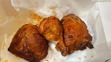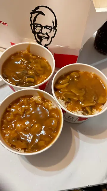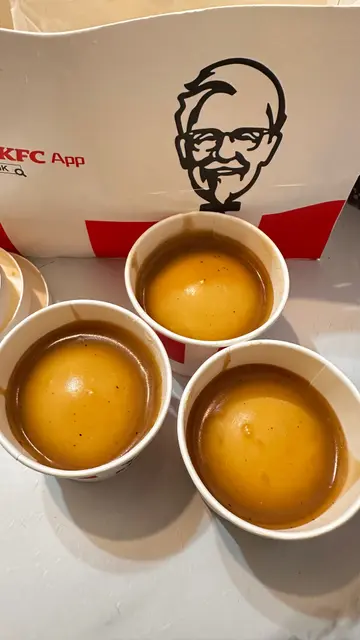 好耐無食KFC,見星期日都有下午茶餐,買咗個外賣返屋企食,叫咗T3,有香骨雞3件,馬玲薯蓉(普通),經典葡撻,飲品加咗5蚊,要豆漿,另加購咗巴辣雞粒一打開盒,感覺細份咗,食落香骨雞,好鹹,唔好食😖,而巴辣雞粒,食落雖然唔柴口,但外面偏硬,味道還可以,兩者都係多粉漿,只有薯蓉同葡撻,食落味道正常👌豆漿,飲落偏甜,但味道還好整體來講,香骨雞唔好食,其他食物味道一般,全部合共$43.5,感覺麻麻地亦唔抵食