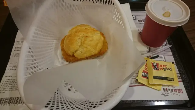 香港人生活太急速:(,早餐唔需要食太多,若有時間可以去坐下,慢慢食個早餐,都係一個唔錯既享受。KFC嘅早餐其實唔差,整得外脆內軟,內裏還熱烘烘,食物溫度保存得好好。佢嘅薯餅比麥當勞薄身些少,闊身些少,外層好脆口。但咖啡就差一D,有些少鞋口,沒有另配奶。但整體算唔錯:)。查看更多