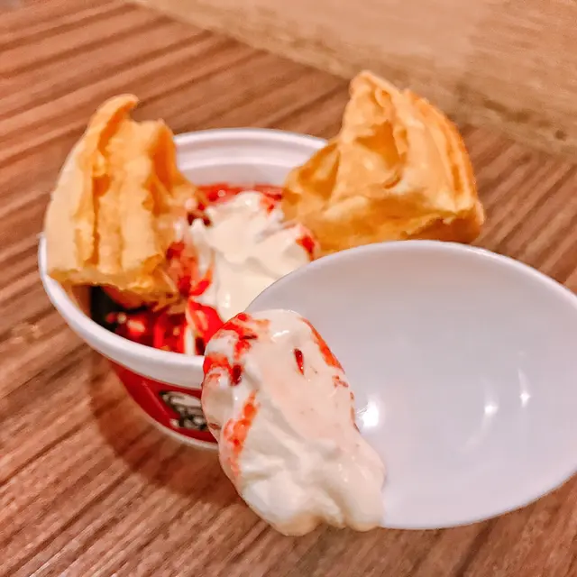 KFC又推岀新搞作,大牌薯條店推岀窩夫新地餐佢又玩窩夫。等我試試先la!新品: 1. XO醬脆雞 $18/件,$38餐其實就係平時既炸雞上面搽上左XO醬。XO醬有驚喜,甜甜辣辣好惹味!而炸雞雖然沾上醬汁但依舊香脆,值得一試。2. 野莓窩夫新地 $18食完炸雞,想食甜品?冇問題~新登場既野莓窩夫新地可以試試。即製既窩夫口感驚喜夠鬆脆,加埋雪糕好味!佢地話雪糕用既係紐西蘭牛奶,食落真係奶味濃少少,野莓醬味道算天然,甜品控可以一試!(不過用膠碗就有少少殺風景)查看更多