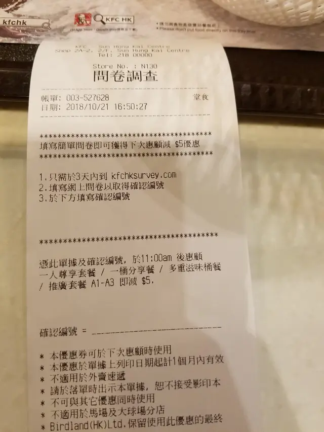 灣仔碼頭附近想搵D野食所以就去左灣仔港灣道30號新鴻基中心2樓2A-2號舖 肯德基家鄉雞 食個下午茶佢有個餐都幾抵30蚊內就有得食個TEA SET有一隻雞腿,不過我叫佢要辣既佢俾左隻唔辣既我不過已經食左一下先知就冇啦,廢事搞咁多去換喇唔係好熱,所以唔好食萄撻都OK既,都暖既,同埋倨皮都唔錯都算鬆化辣雞粒就真係幾好食喇岩岩炸起夠晒熱,同埋真係幾香口,食落就唔想停直至食晒為至飲杯可以免費轉蜂蜜綠茶,都係正常野黎既有個網上問卷調查,上網做完就有5蚊用查看更多