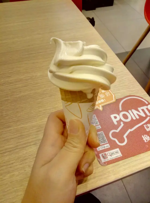 話說kfc出左隻軟雪糕,好似以前burger king咁,最近仲做緊買一送一,點可以唔試呀?上面嘅軟雪糕好香濃雲呢拿味!亦都好軟熟!最正嘅就係下面嗰筒好脆好脆!好似啲雞出面嗰層咁脆!唔會話好甜,甜到好難入口嗰種。亦都冇麥當勞嗰種咁雪嘅味道。其實食完後覺得少少似burger king個個啦,不過都係嗰個好食啲!查看更多