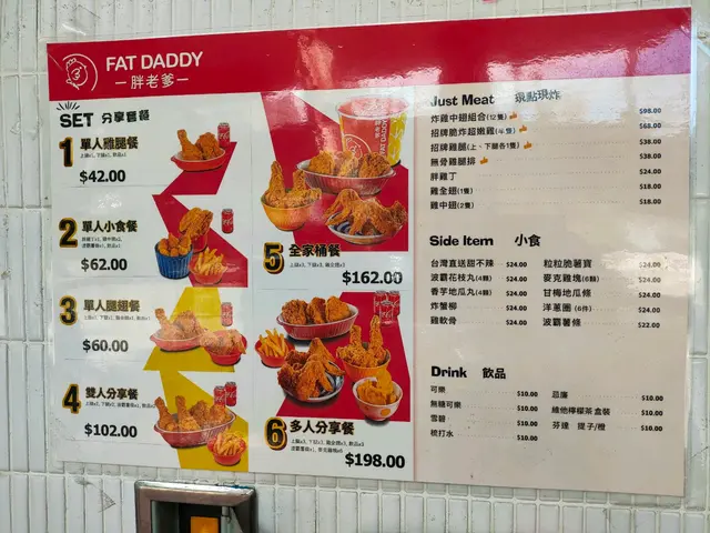 胖老爹美式炸雞 (糖街) (銅鑼灣) 網址: https://s.openrice.com/QrbS0hFGC00 地址: 香港銅鑼灣糖街8號樂聲大廈地下G05號舖 電話: +852 59350015